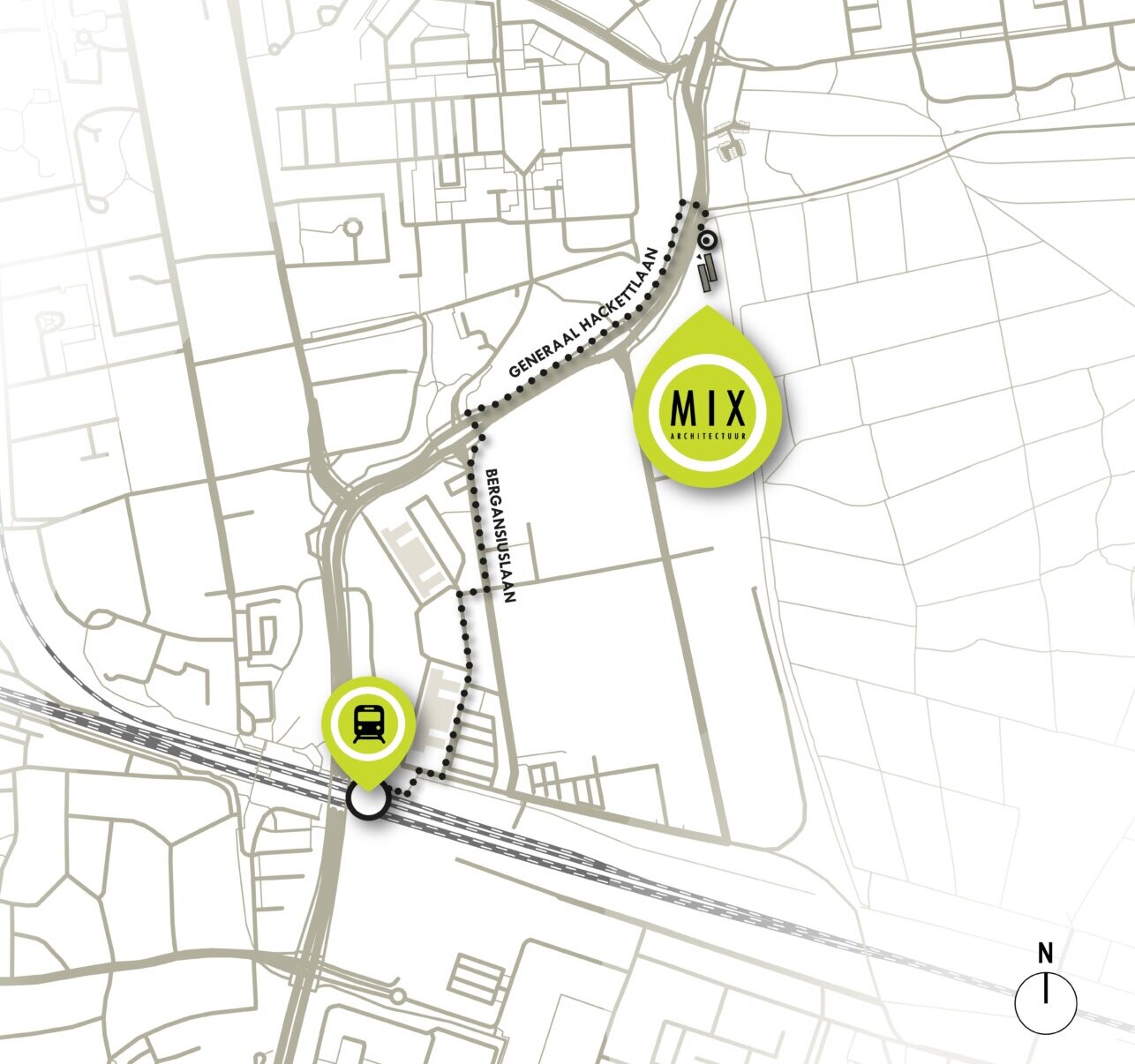 > Wandel- en fietsroute van station naar MIX