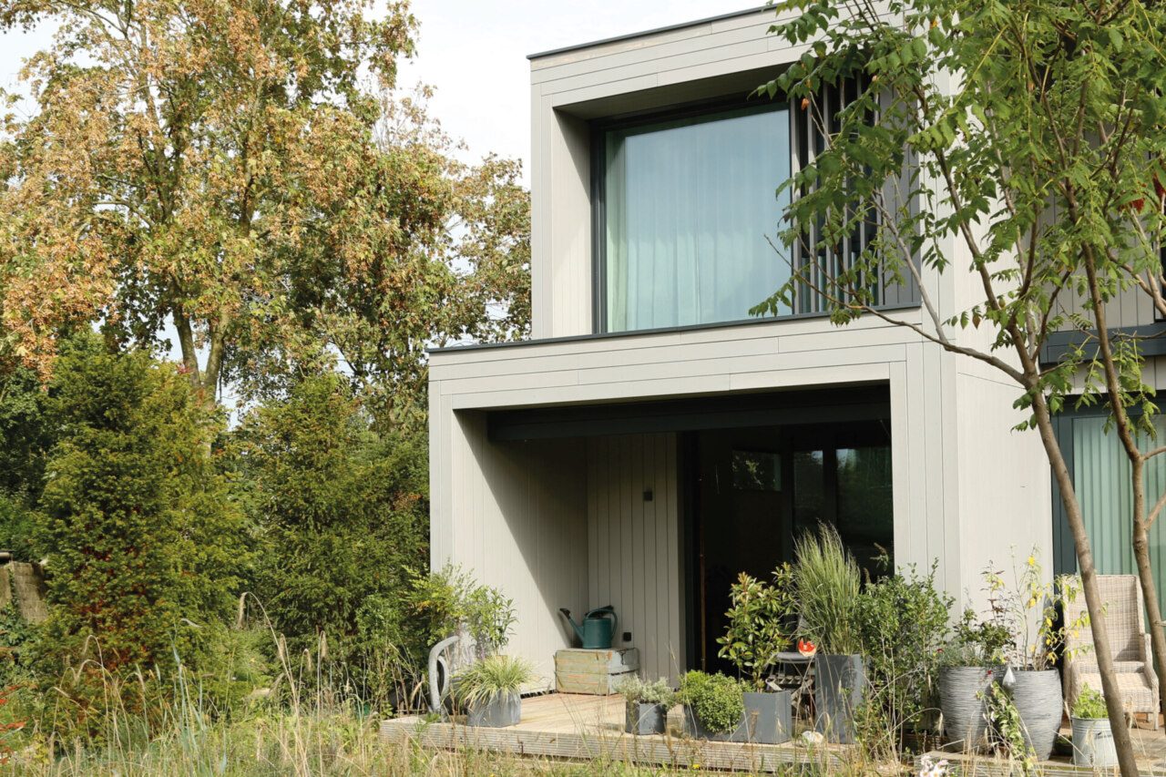 Stel je voor: je opent de verdiepingshoge schuifpui in je woonkamer, snuift de frisse boslucht op, wandelt via je houten terras met begroeide pergola naar het kleine poortje in de lage heg om vervolgens midden tussen de bomen te staan. Dat is toch genieten?
