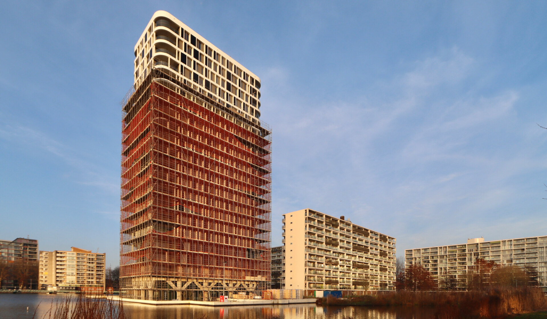 De toren is op hoogte en de steiger is aan het zakken
